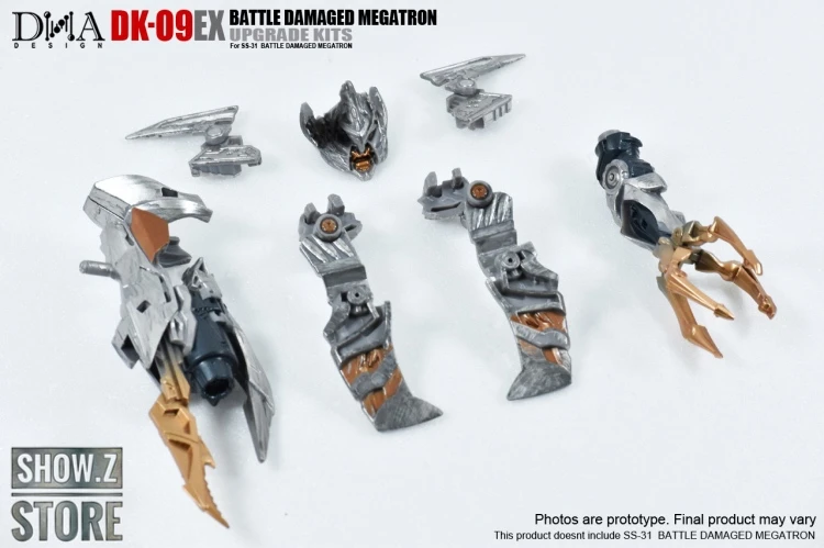 DK-09EX Megatron Battle Damaged Upgrade kit by DNA Design is the ultimate add-on kit for Studio Series Voyager SS31! Features a new arm cannon, claw attachment, and wing blade attachments! Made of PVC, POM and ABS.Â