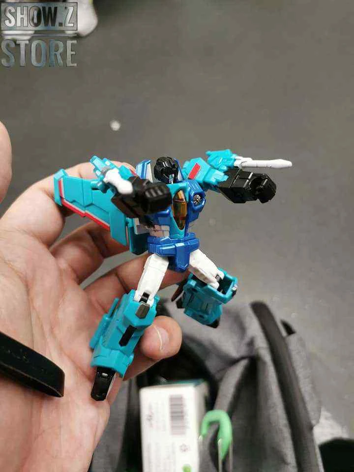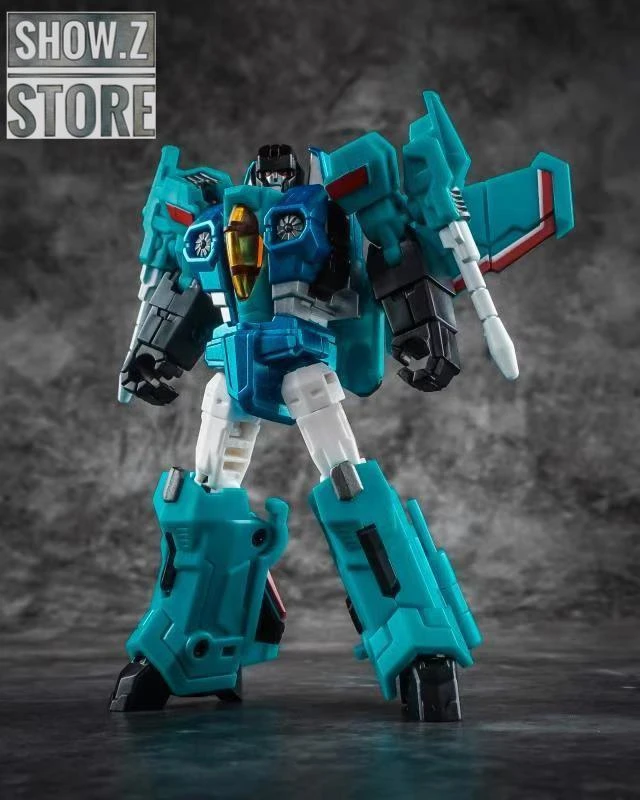 Iron Factory – Wing of Tyrant IF-EX20K Kallaite is recolored in the teale seeker jet color scheme. This figure is legends scale and transforms from seeker jet to robot and back.Â